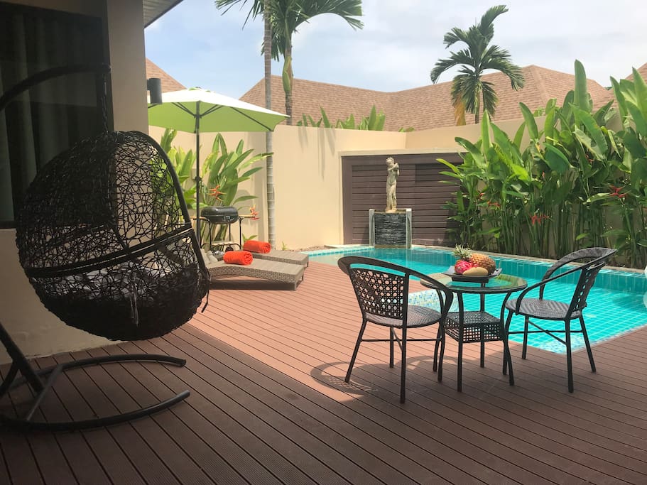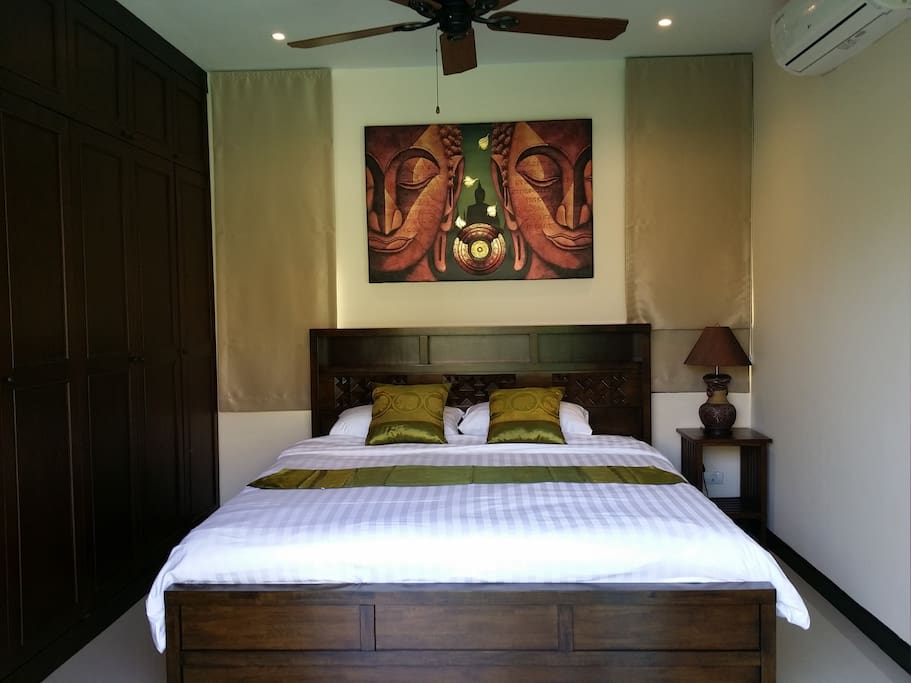 Nai Harn with an adjacent picturesque lake. You can appreciate one of the best beaches with beautiful sunsets. Everything you need: cafes, restaurants with various cuisines, shops with the basic necessities, fruits, vegetables, etc.