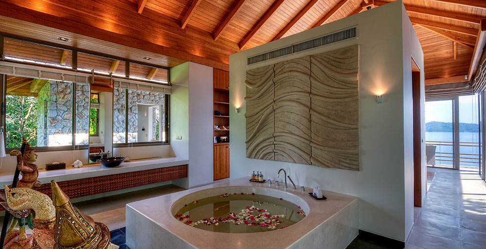 Изысканная вилла сочетает в себе тайский и современный стиль с вдохновляющим видом на море для незабываемого отдыха. Величественно возвышаясь на склоне холма, на краю частной усадьбы, вилла полна безмятежной элегантности, в окружении цветущих франжипани и ароматного пандана.