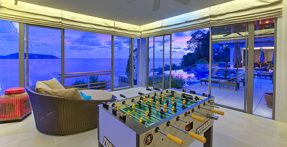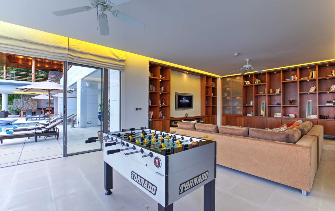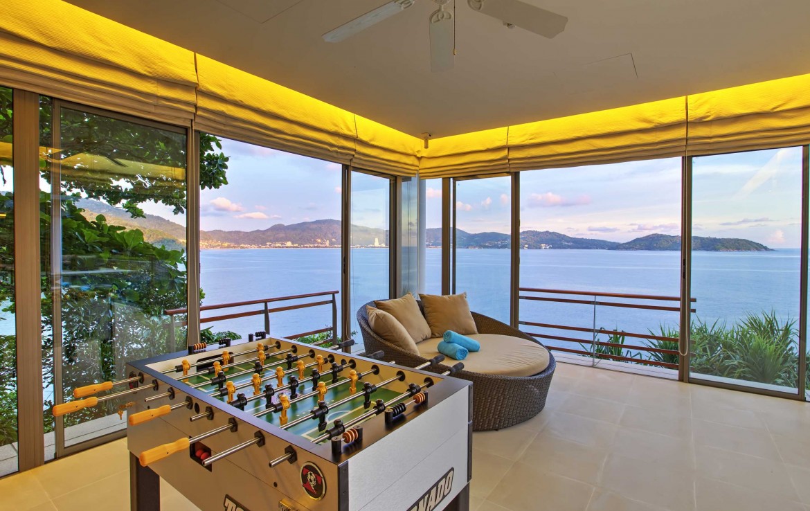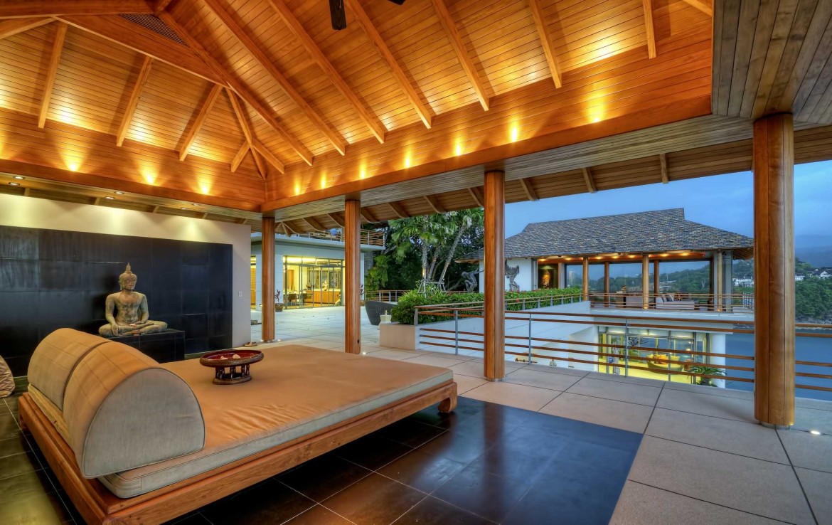 Расположенная на пяти этажах, вилла имеет прекрасный баланс открытых помещений и отдельных комнат, с современными удобствами и потрясающим видом из панорамных окон. Павильоны с открытой площадкой, расположены вокруг больших террас на двух этажах, из которых есть выход в просторную гостиную с потрясающим видом на бассейн, так же в вилле располагается удобная и хорошо оборудованная медиа-комната. В одном уголке виллы спрятаны павильоны с видом на океан, в которых расположены три спальни для гостей и зал для фитнеса / йоги.
