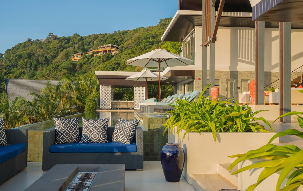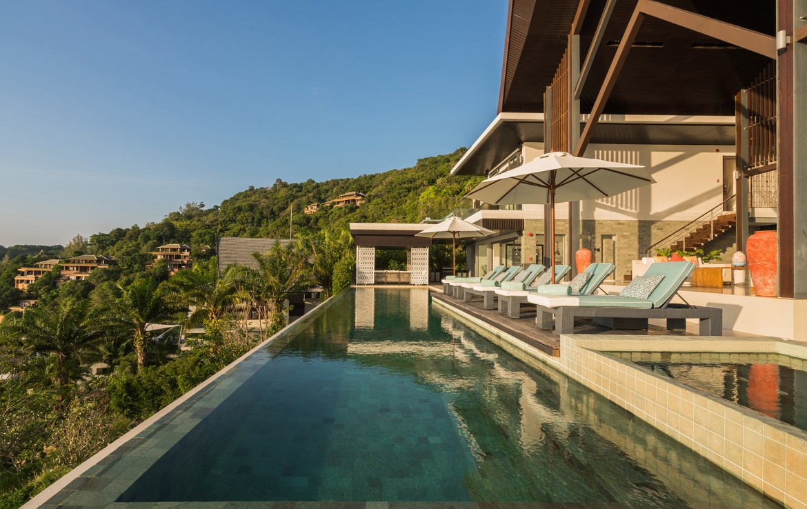 Элегантная вилла расположена на четырех этажах в эксклюзивном поместье на склоне холма рядом с пляжем Камала. В сторону моря расположен великолепный 19-метровый бассейн с аквамариновой плиткой и джакузи, окруженный широкой террасой с большим пространством для отдыха.