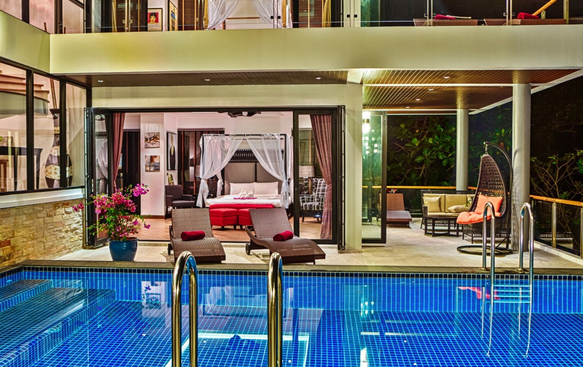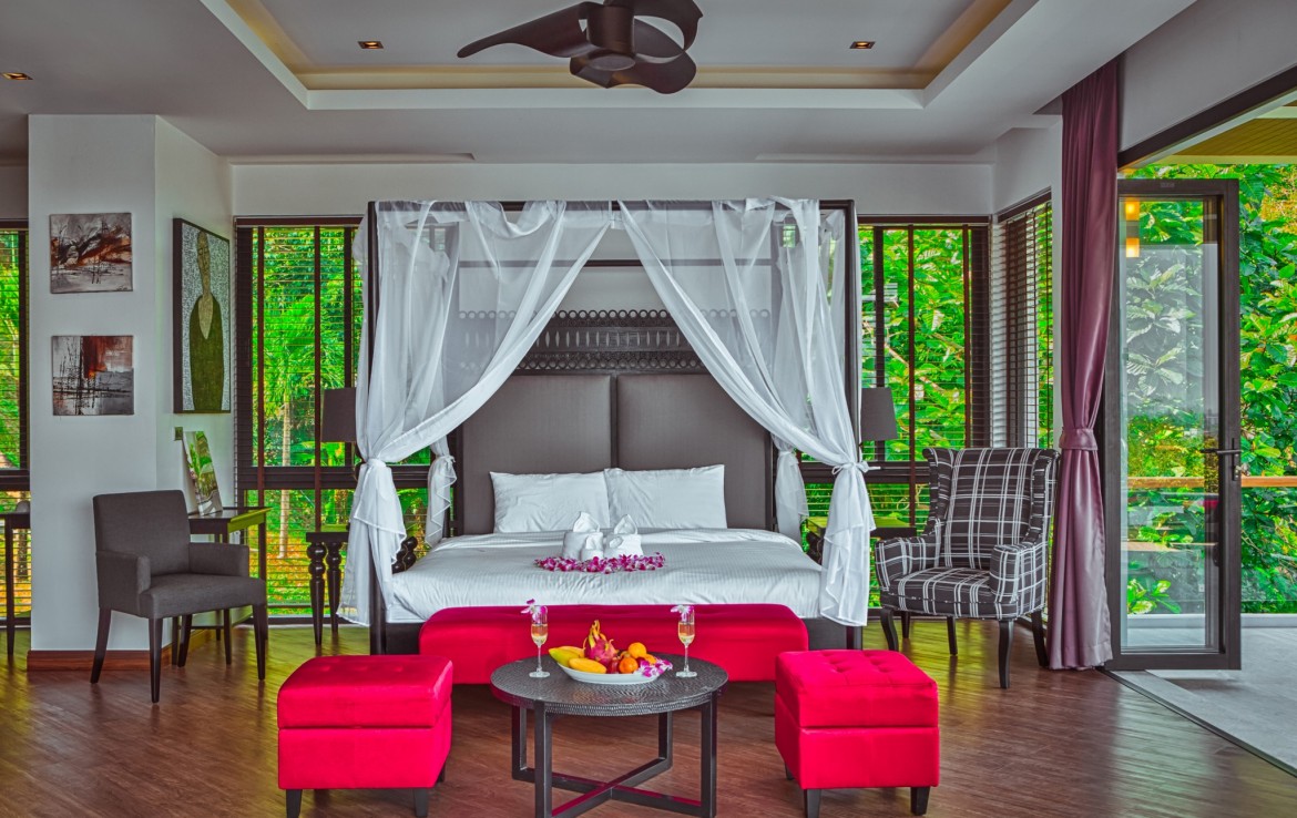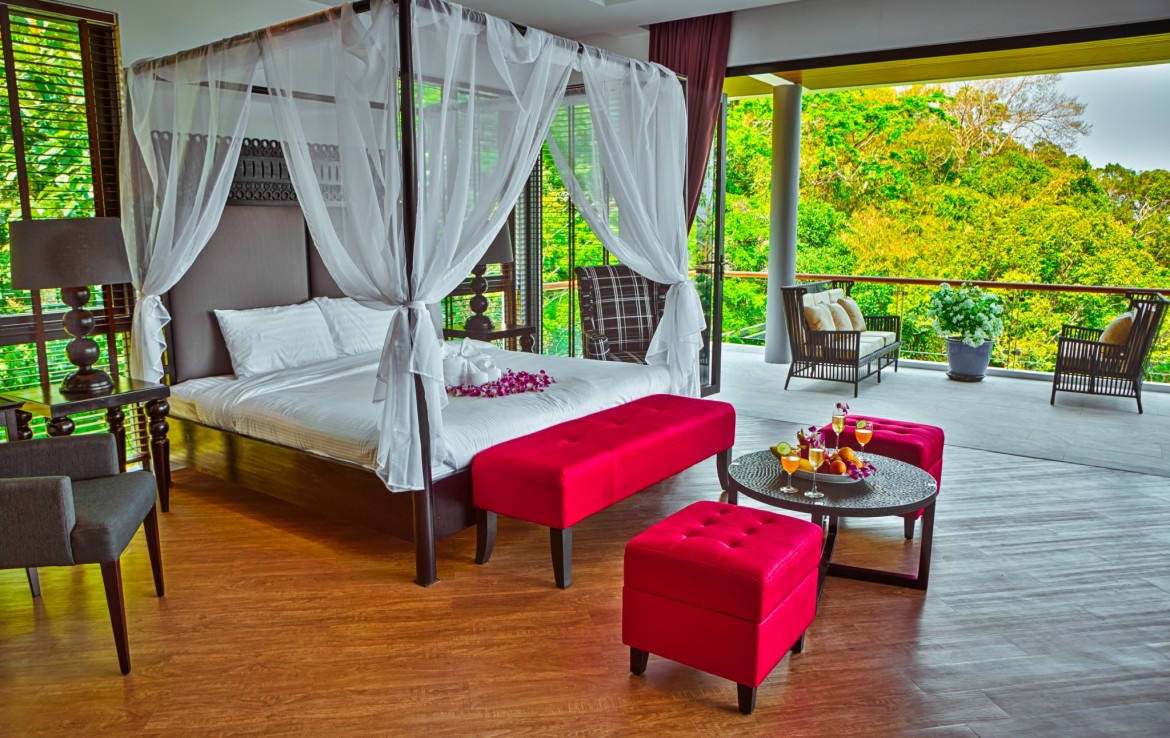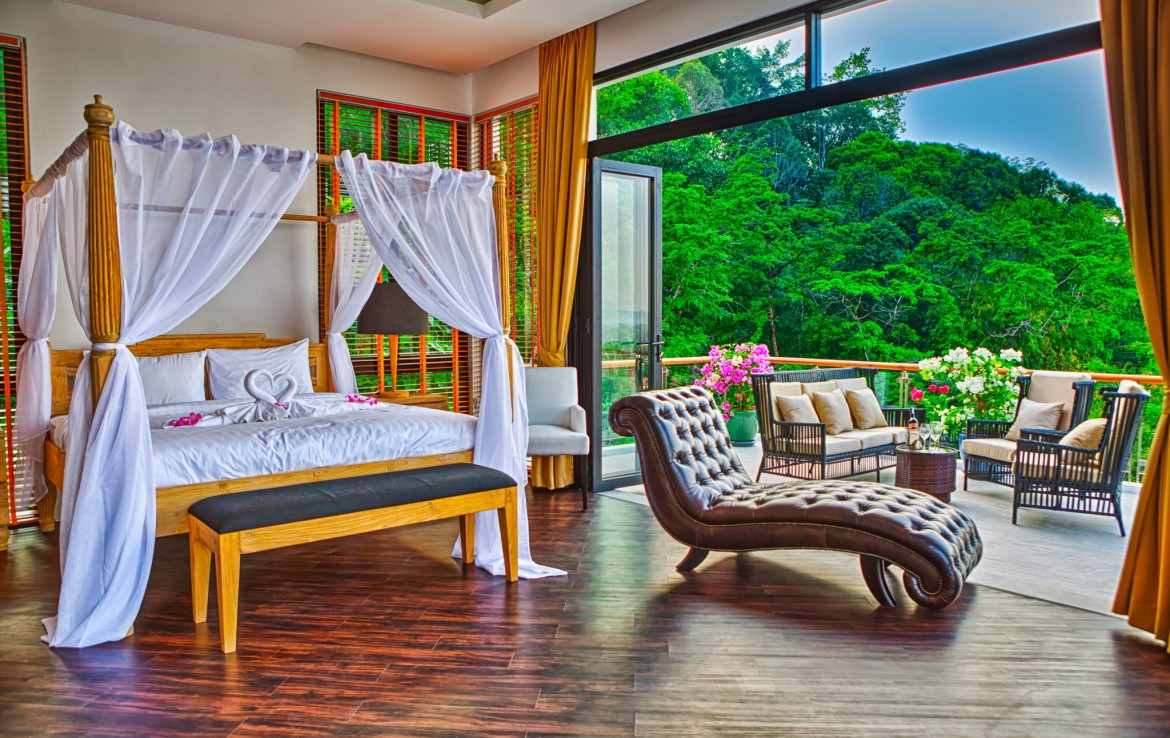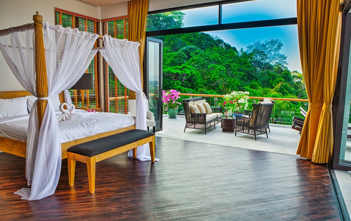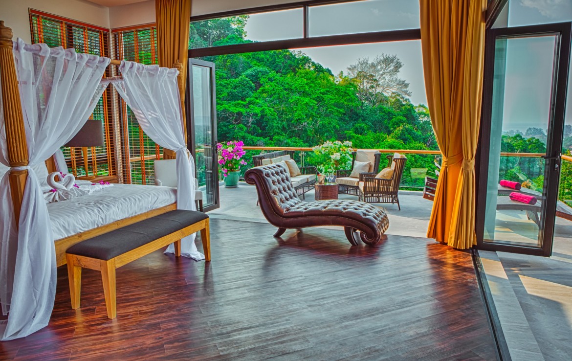 Комплекс расположен на склоне холма высотой 70 метров в окружении пышного тропического леса и красивейшего водопада. С виллы открывается захватывающий вид на красивую долину Бангтао и Андаманское море.