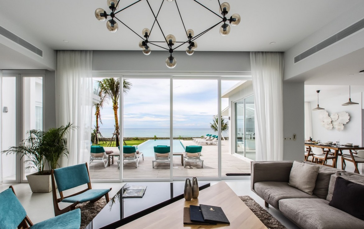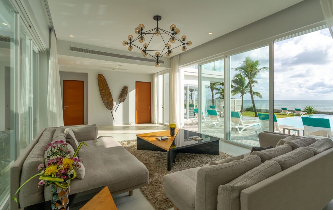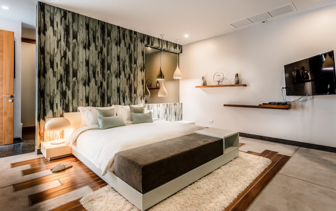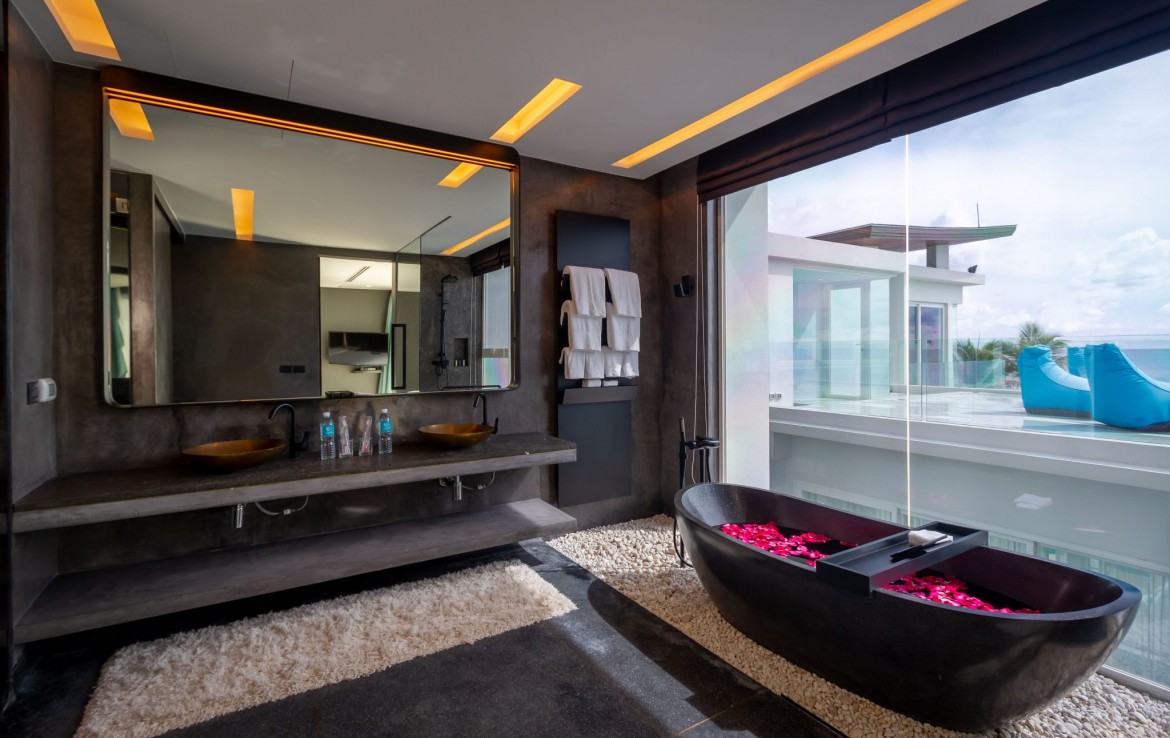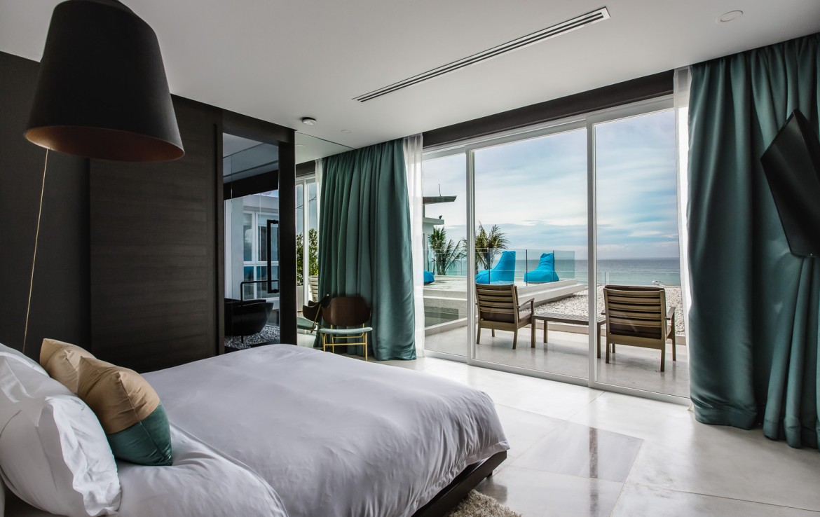 Совершенно разная стилистика в каждой из спален, с прилегающими крытыми и открытыми площадками с большим бассейном, собственный океанический бар и отдельный спа-салон.