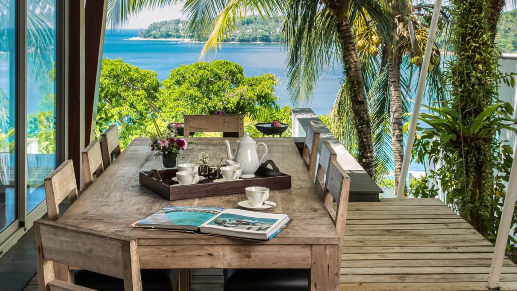 В просторной светлой гостиной зоне установлены большие стеклянные окна и двери, из которых открывается потрясающий вид на океан, а современные удобные кресла приглашают вас отдохнуть и расслабиться.