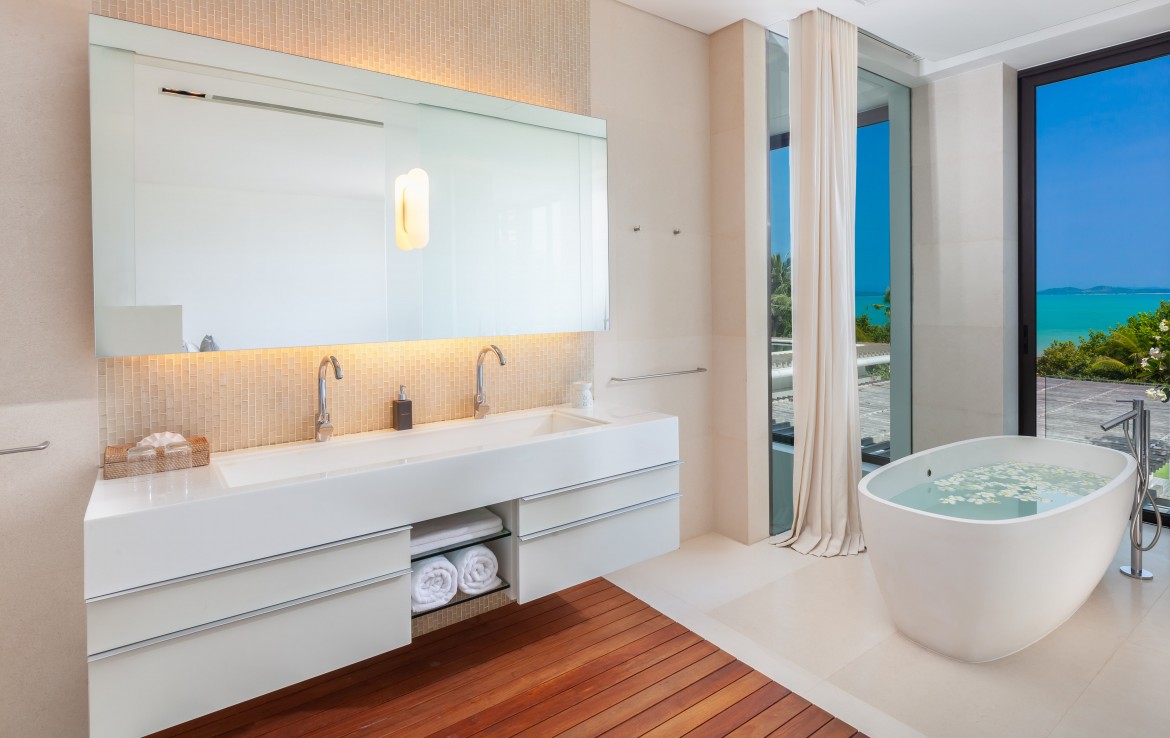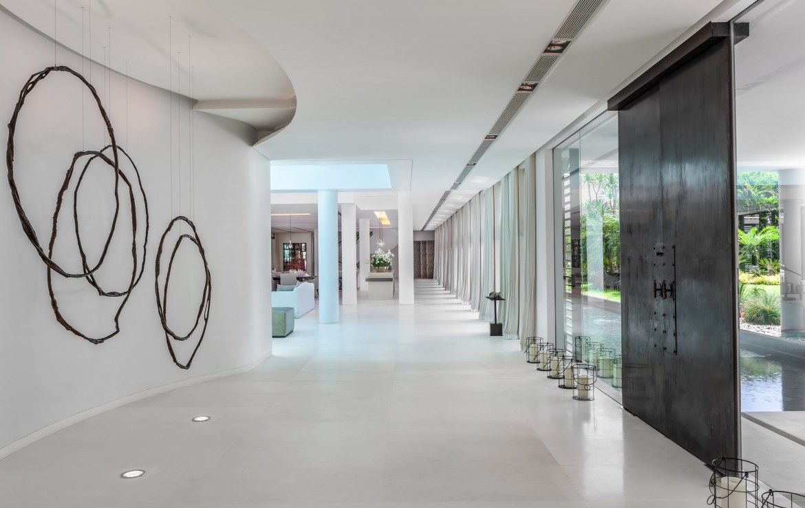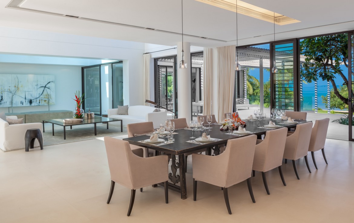 Вилла умело сочетает в себе современную архитектуру и культовые тайские черты. Интерьер излучает современный минималистский стиль, дополненный деталями азиатского искусства.