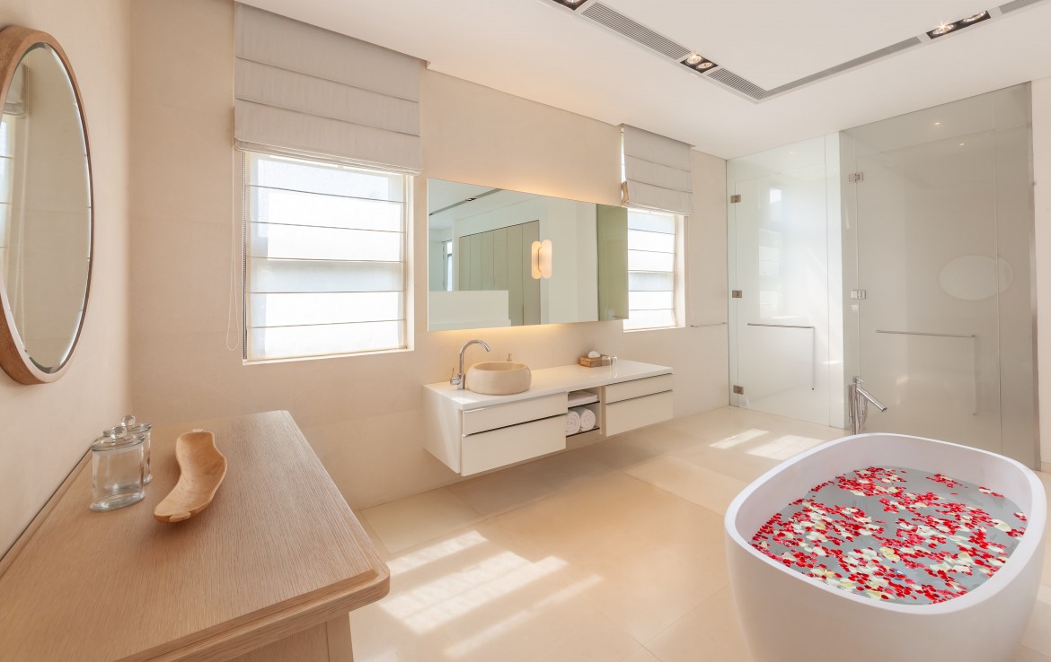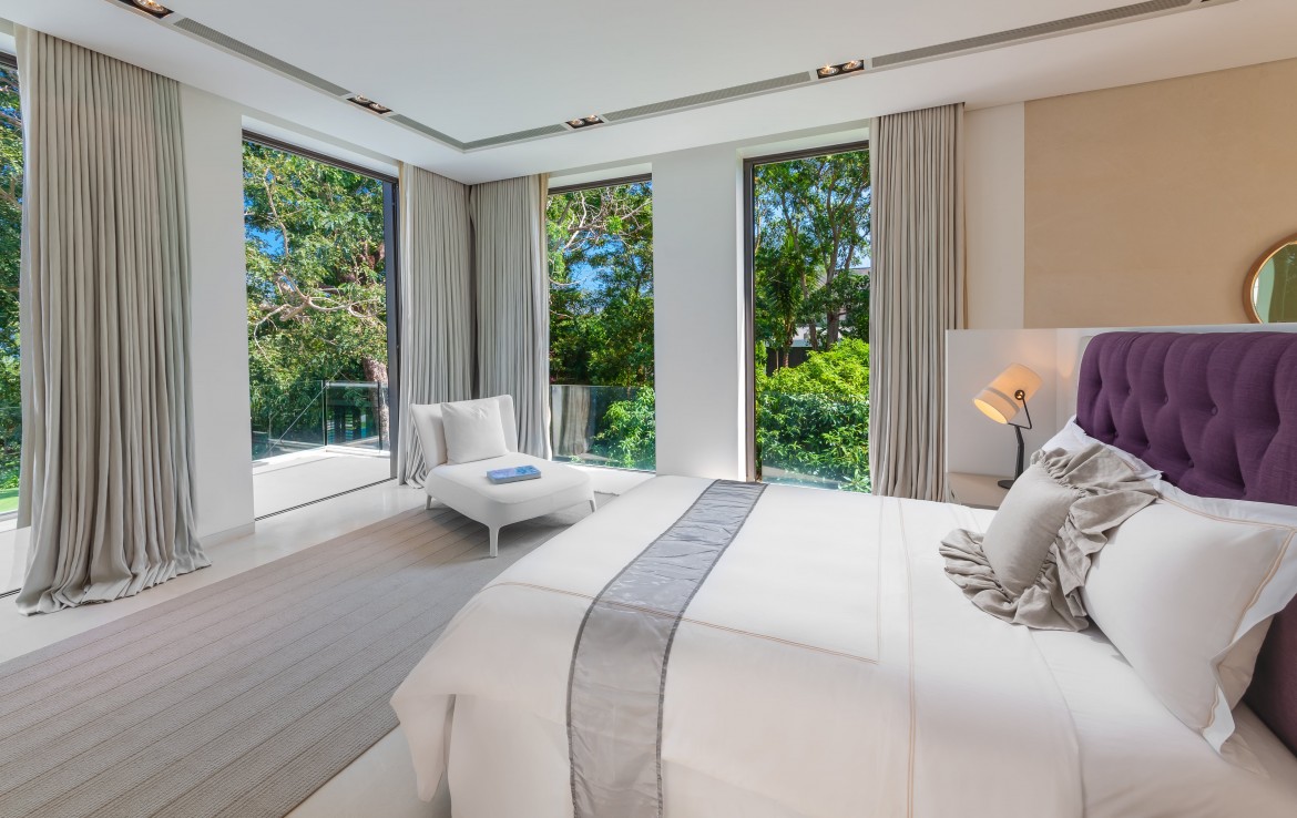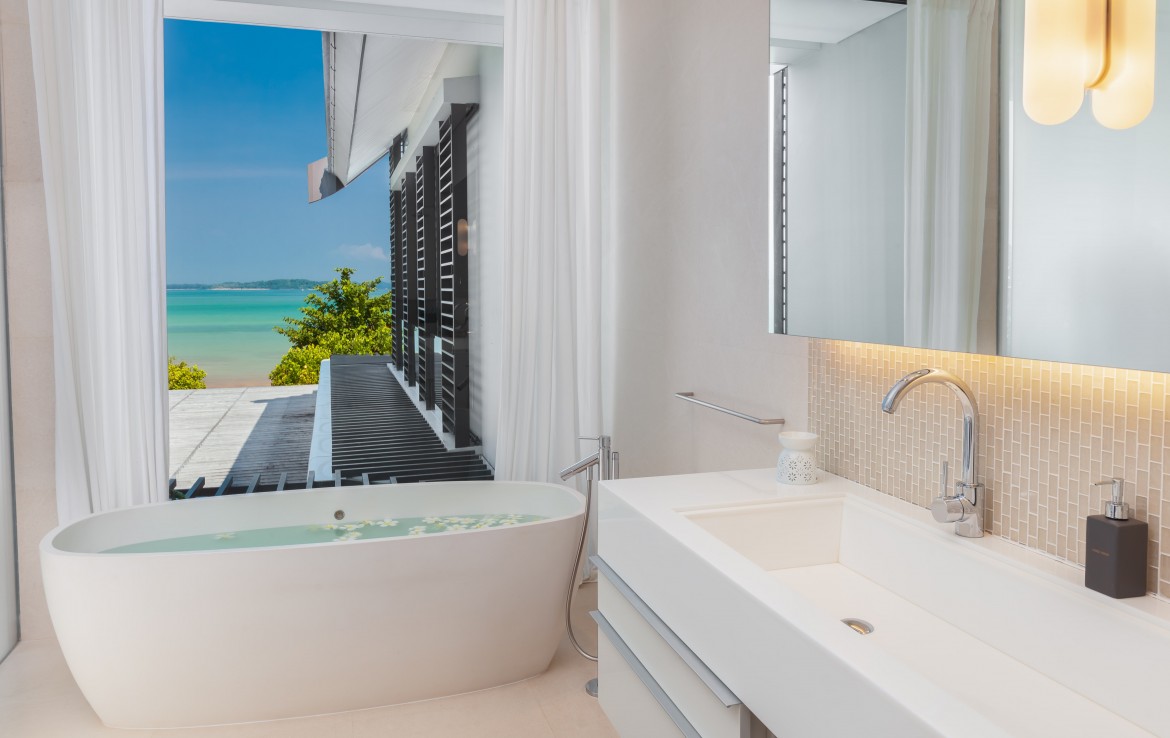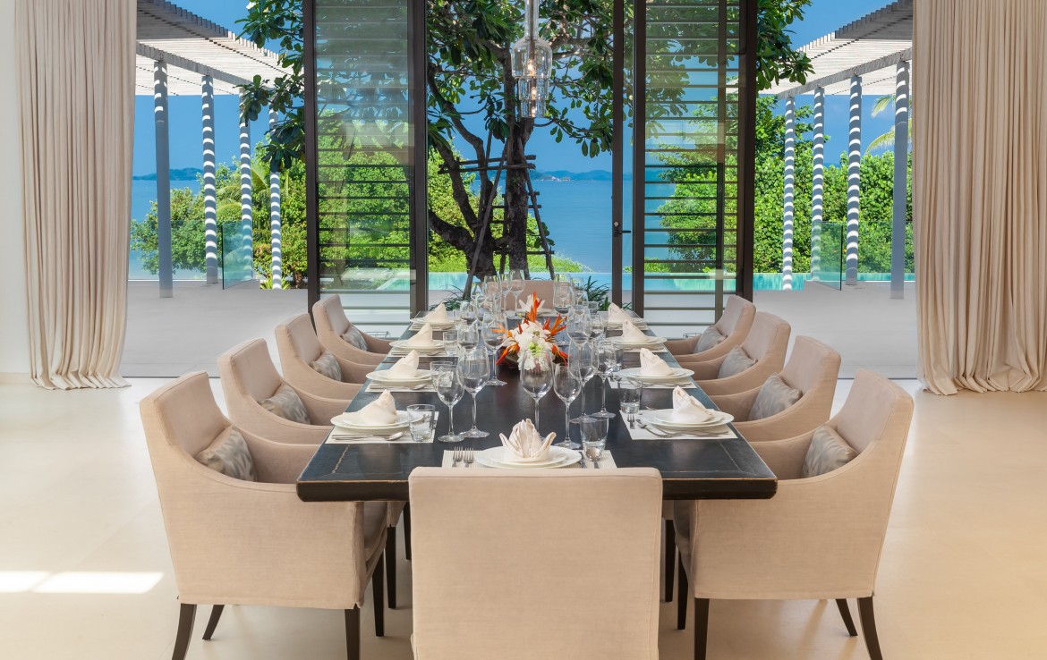 Каждая из 6 спален с ванными комнатами, полностью оборудована кондиционерами, имеет собственный туалет и ванную. В какую бы комнату вы не вошли, вы сможете насладиться видом на залив Пханг Нга и Андаманское море. Красивейшая винтовая лестница соединяет два этажа виллы. На втором этаже, вы можете провести время в тренажерном зале, с панорамным видом на открытое море. На первом этаже, гости могут пообедать и пообщаться в просторной столовой и гостиной. Хотя на вилле есть полностью оборудованная профессиональная кухня, заниматься готовкой вам не потребуется. Ваш личный повар с радостью сделает это за вас.