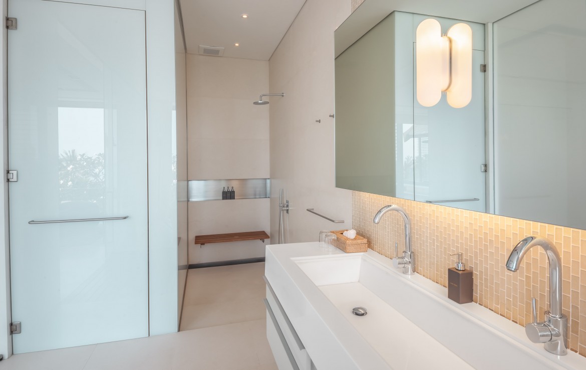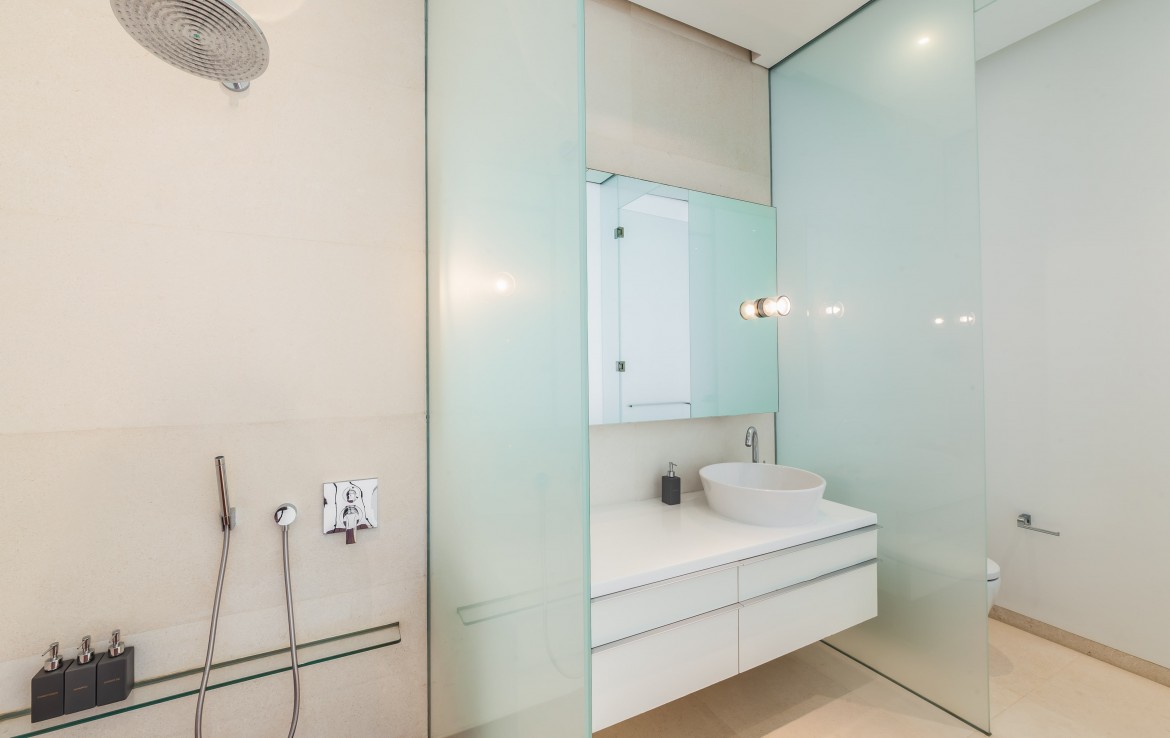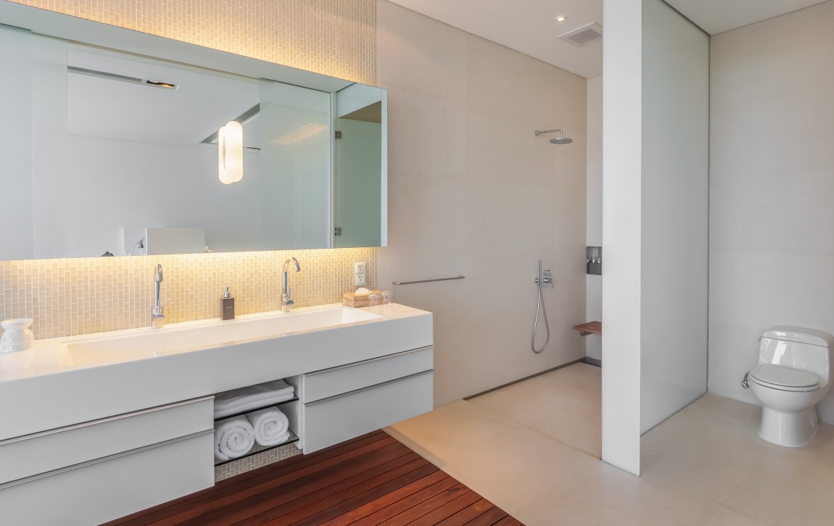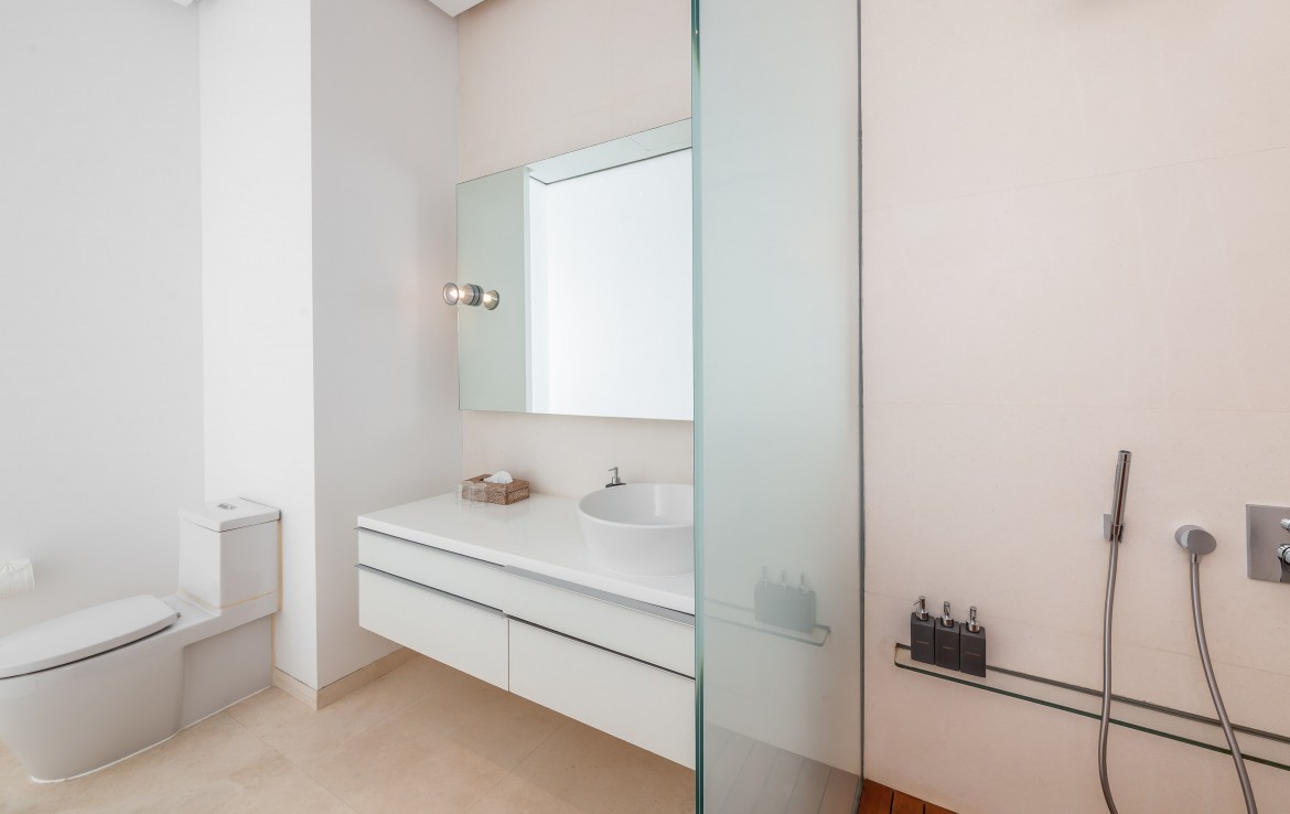 Каждая из 6 спален с ванными комнатами, полностью оборудована кондиционерами, имеет собственный туалет и ванную. В какую бы комнату вы не вошли, вы сможете насладиться видом на залив Пханг Нга и Андаманское море. Красивейшая винтовая лестница соединяет два этажа виллы. На втором этаже, вы можете провести время в тренажерном зале, с панорамным видом на открытое море. На первом этаже, гости могут пообедать и пообщаться в просторной столовой и гостиной. Хотя на вилле есть полностью оборудованная профессиональная кухня, заниматься готовкой вам не потребуется. Ваш личный повар с радостью сделает это за вас.