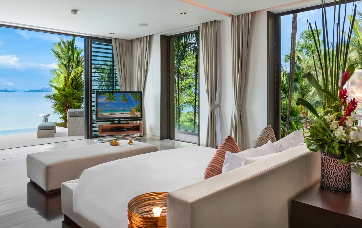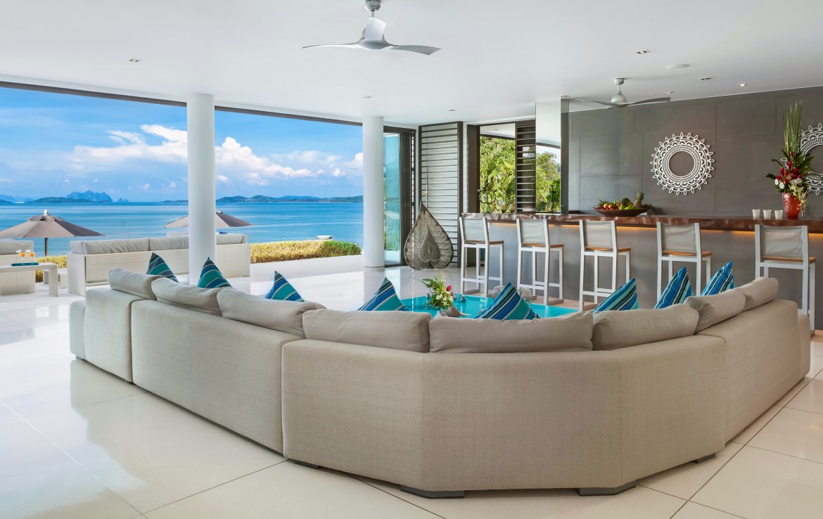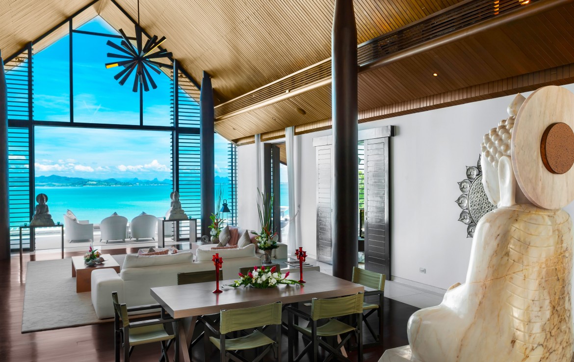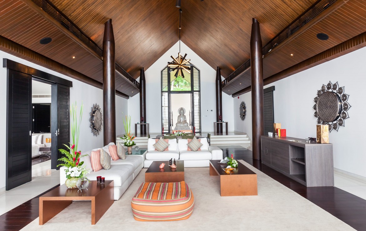 Дизайн вилл выполнен в современном минималистском стиле с оттенком тайской архитектуры, такой как остроконечная крыша в традиционном тайском стиле. Декор представляет собой идеальное сочетание современного шика и традиционного дизайна. Интерьер виллы, как правило, минималистичен, с безупречными белыми стенами, комнаты усеяны стильной мебелью и произведениями искусства. При входе гостей приветствует просторная гостиная с плюшевыми диванами, мраморные статуи Будды, не говоря уже о великолепном виде на океан. Прямо перед виллой, всего в нескольких шагах расположен расслабляющий открытый бассейн, с невероятным панорамным видом на окружающую природу.