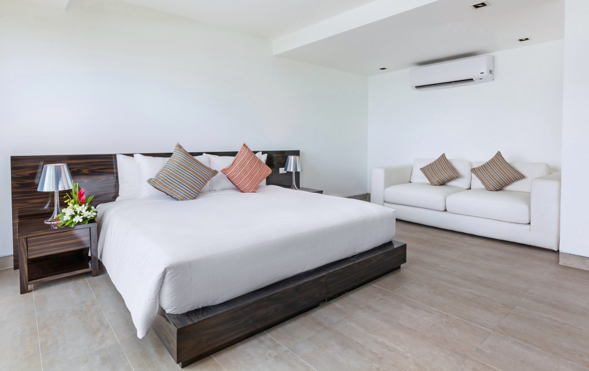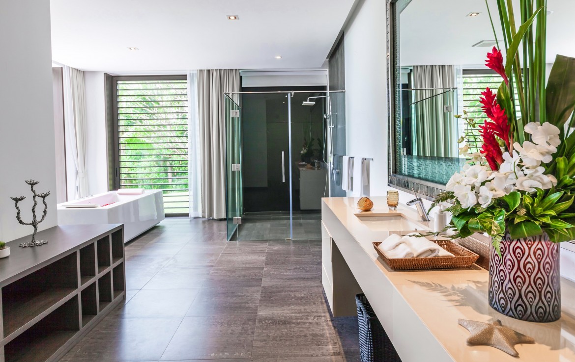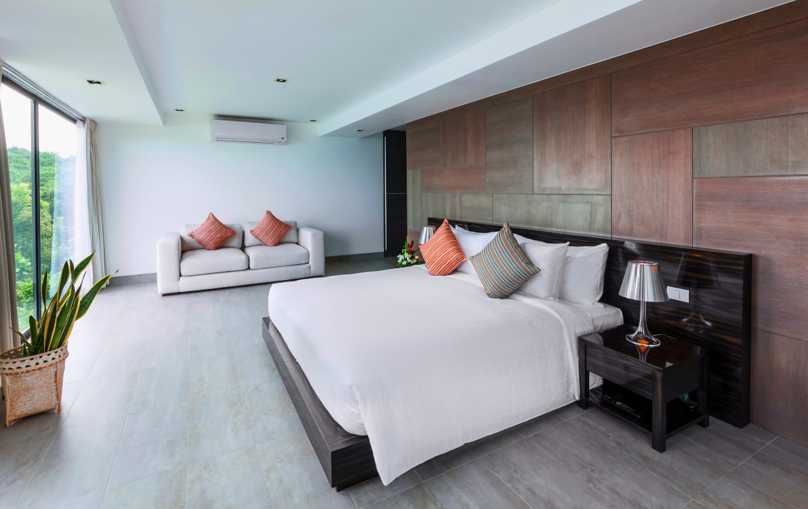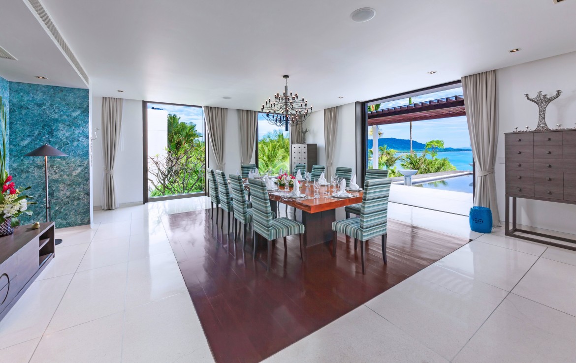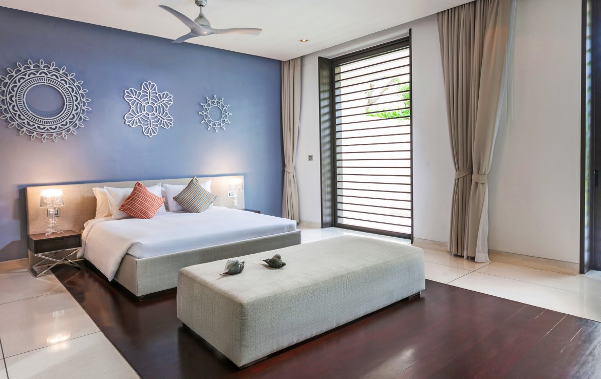 Дизайн вилл выполнен в современном минималистском стиле с оттенком тайской архитектуры, такой как остроконечная крыша в традиционном тайском стиле. Декор представляет собой идеальное сочетание современного шика и традиционного дизайна. Интерьер виллы, как правило, минималистичен, с безупречными белыми стенами, комнаты усеяны стильной мебелью и произведениями искусства. При входе гостей приветствует просторная гостиная с плюшевыми диванами, мраморные статуи Будды, не говоря уже о великолепном виде на океан. Прямо перед виллой, всего в нескольких шагах расположен расслабляющий открытый бассейн, с невероятным панорамным видом на окружающую природу.