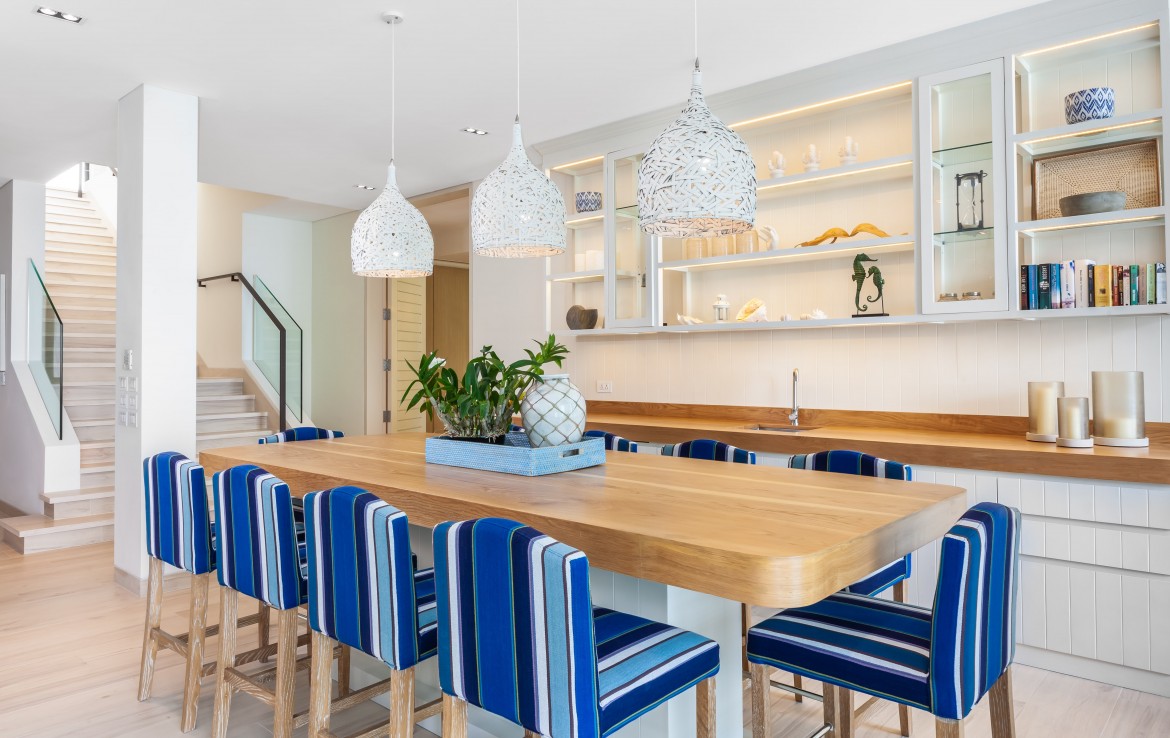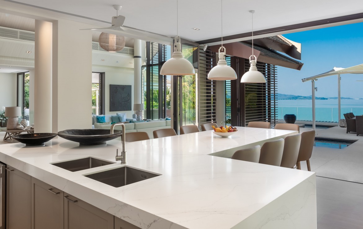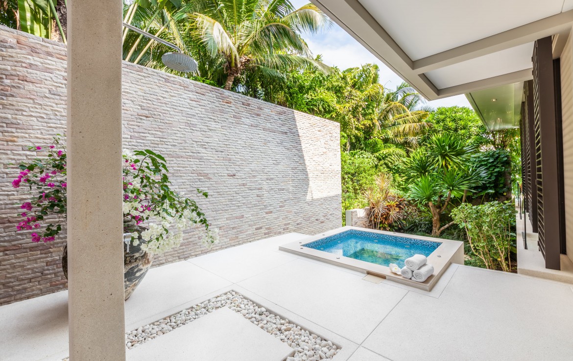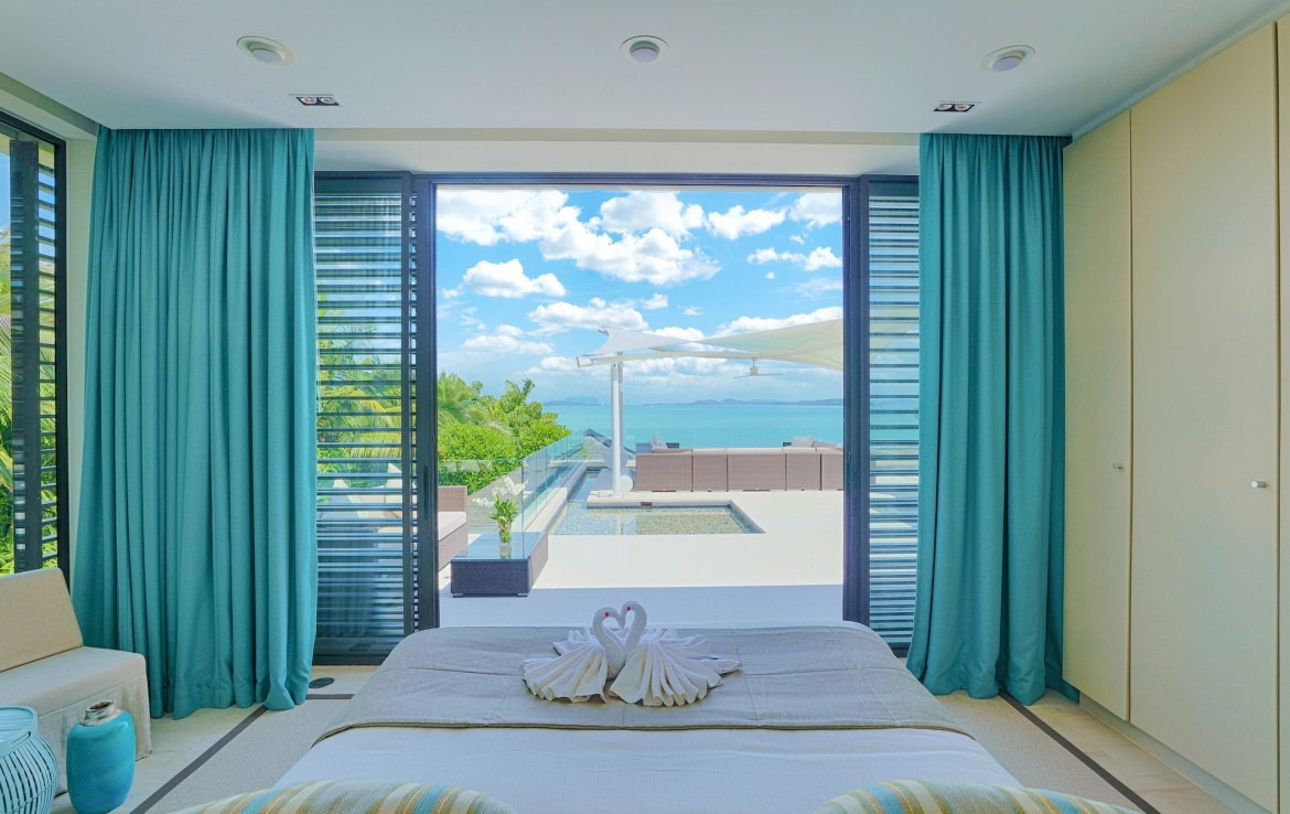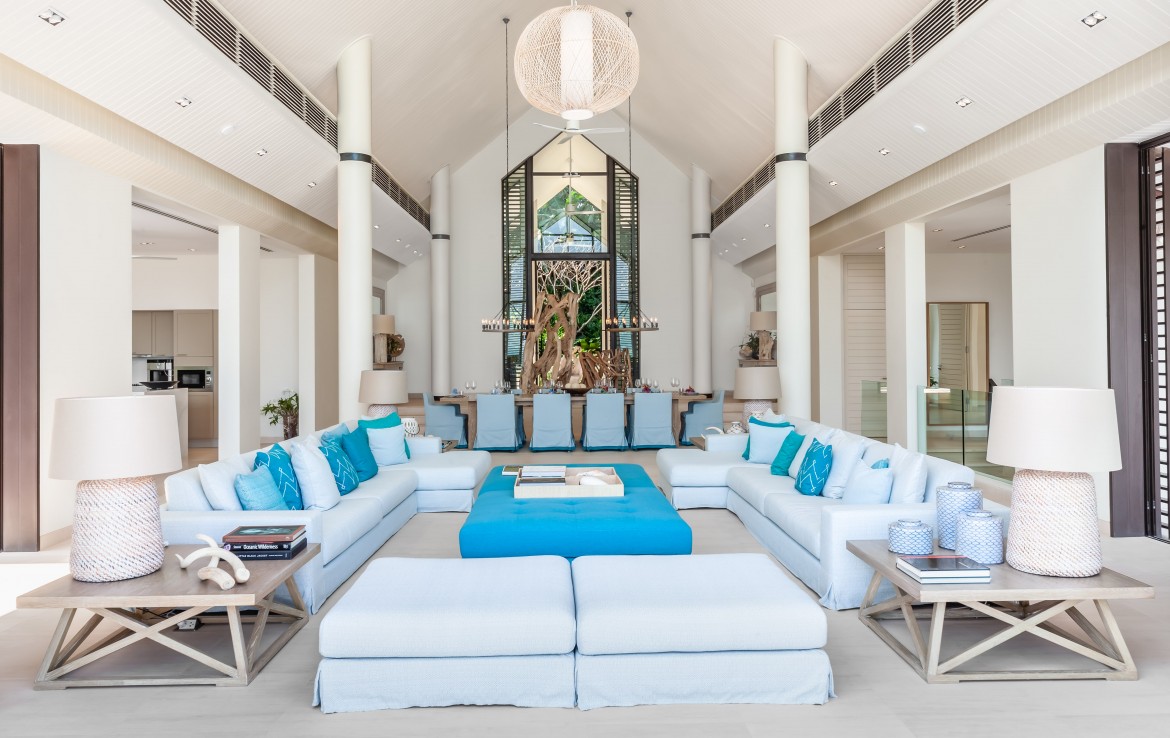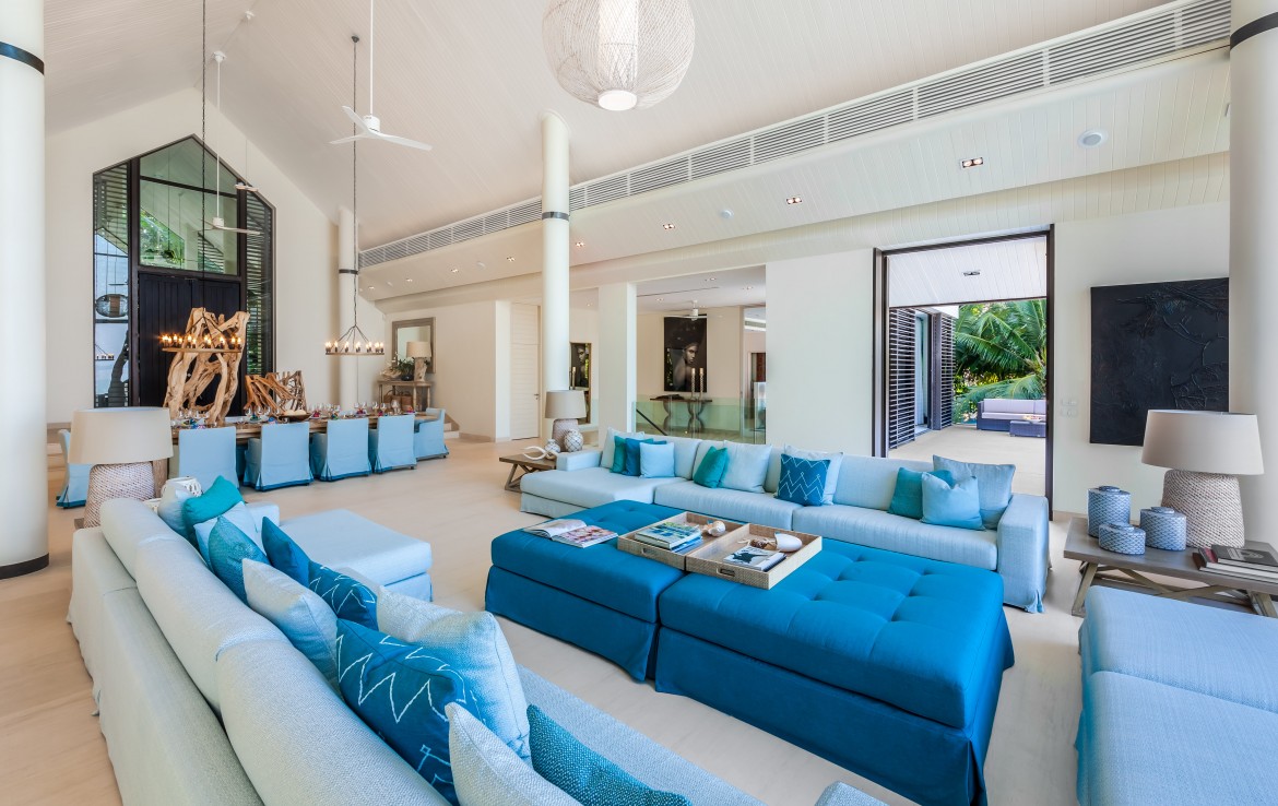 Всего на вилле 5 спален, каждая из которых имеет собственную ванную комнату. Одна из комнат построена в виде отдельного бунгало всего в нескольких метрах от главного дома и предлагает еще более близкий вид на залив. Практически по всей ширине усадьбы простирается переливной бассейн длиной 25 м, а сад простирается до пляжной полосы усадьбы. На вилле также есть обеденная зона и салат на открытом воздухе, бар у бассейна, джакузи, футбольная сетка, байдарки и комната для развлечений с бильярдным столом, Xbox, настольные игры и Apple TV.