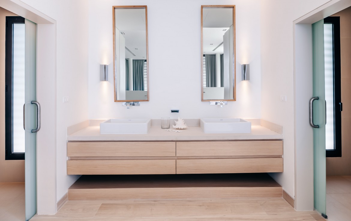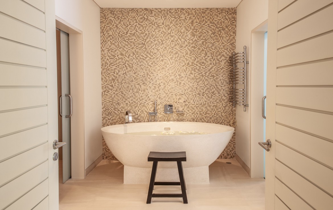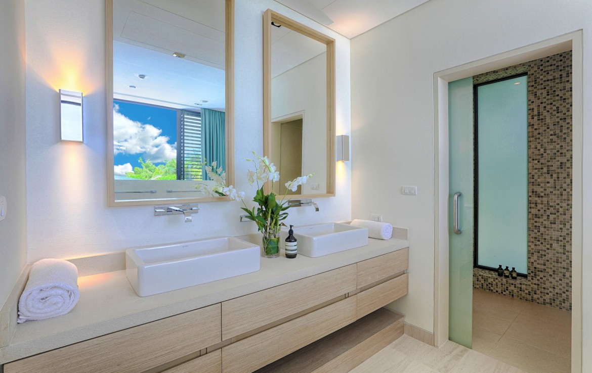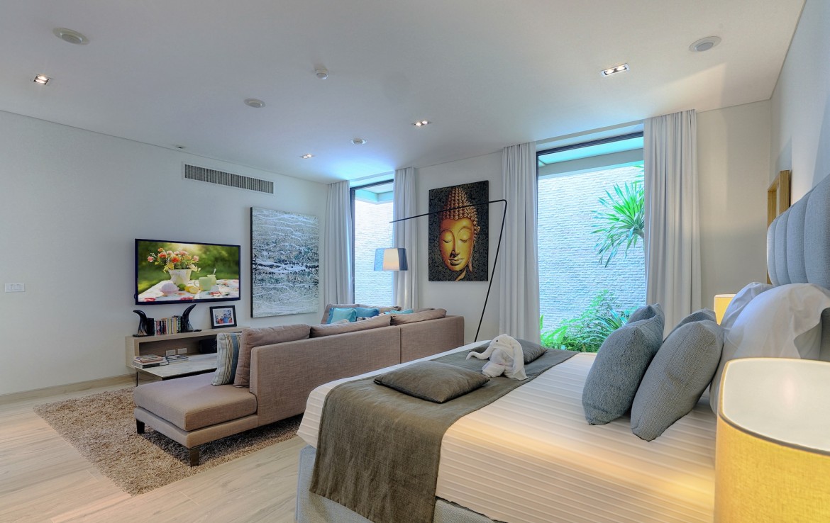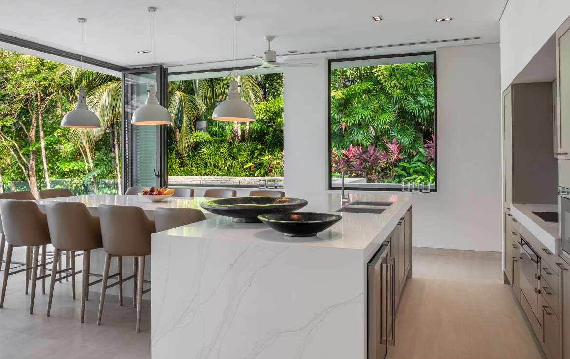 Всего на вилле 5 спален, каждая из которых имеет собственную ванную комнату. Одна из комнат построена в виде отдельного бунгало всего в нескольких метрах от главного дома и предлагает еще более близкий вид на залив. Практически по всей ширине усадьбы простирается переливной бассейн длиной 25 м, а сад простирается до пляжной полосы усадьбы. На вилле также есть обеденная зона и салат на открытом воздухе, бар у бассейна, джакузи, футбольная сетка, байдарки и комната для развлечений с бильярдным столом, Xbox, настольные игры и Apple TV.