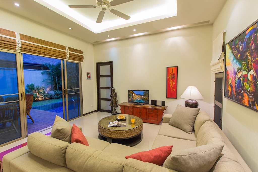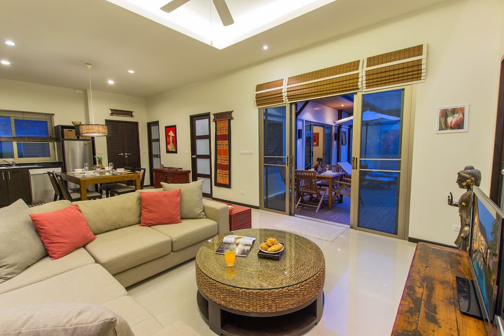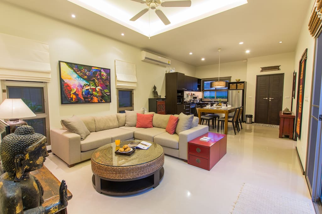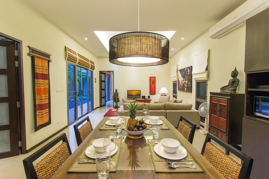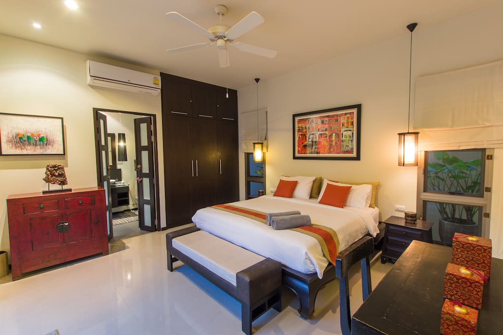 Вилла отличается эклектичным дизайном «Восток встречает Запад», здесь органично и со вкусом сочетаются современная тайская и китайская антикварная мебель, красочный текстиль и произведения искусства Юго-Восточной Азии.