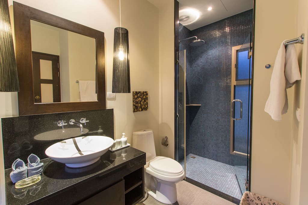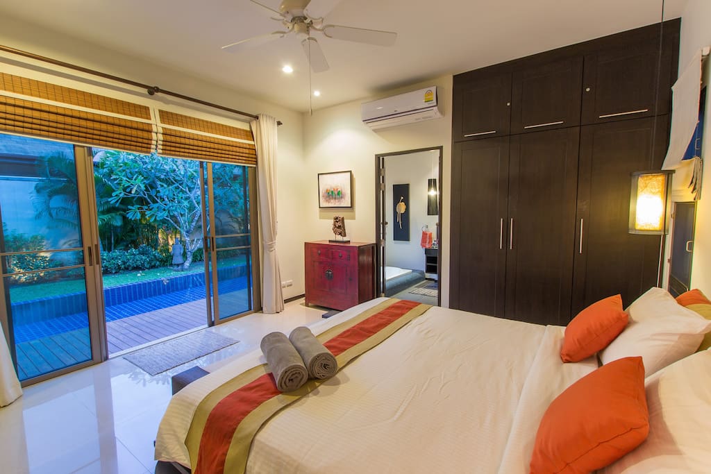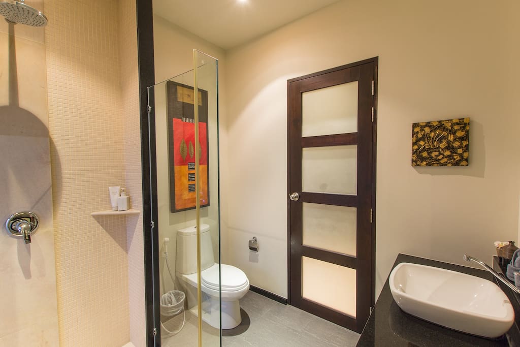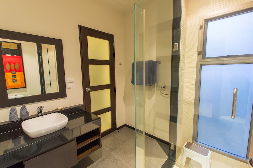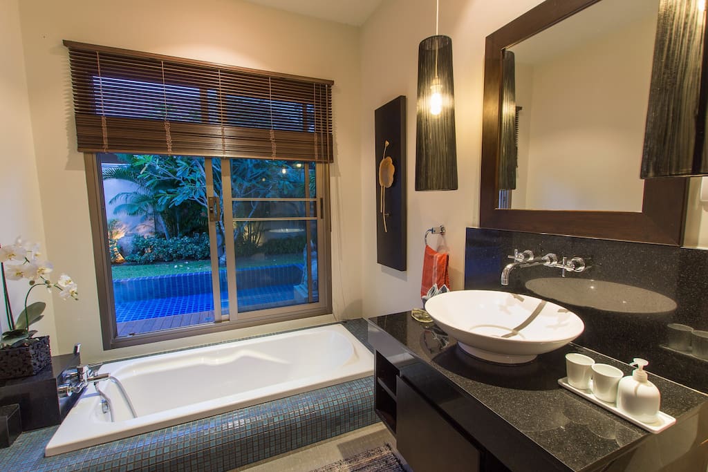 В каждой спальне есть отдельный санузел с тропическим душем и интегрированными (встроенными в пол) ванными. Другие удобства на вилле включают: камеру хранения багажа, прачечную со стиральную машину и сушилкой. Вилла расположена в охраняемом поселке, в нескольких минутах от потрясающего пляжа Найхарн. Здесь вы почувствуете абсолютный комфорт и уединение.