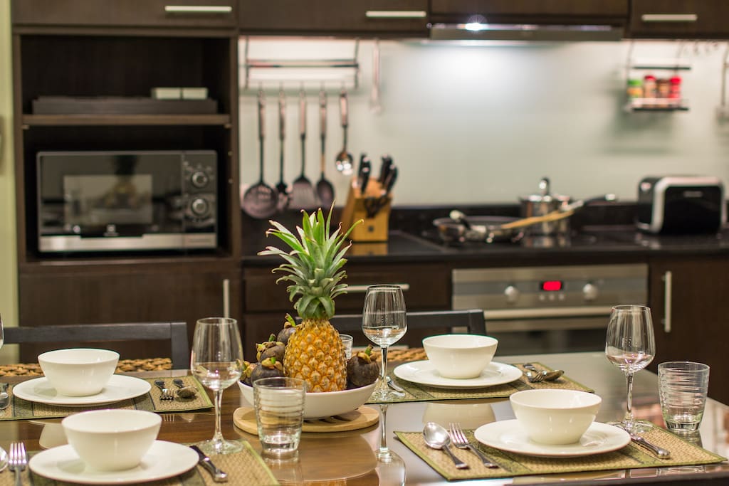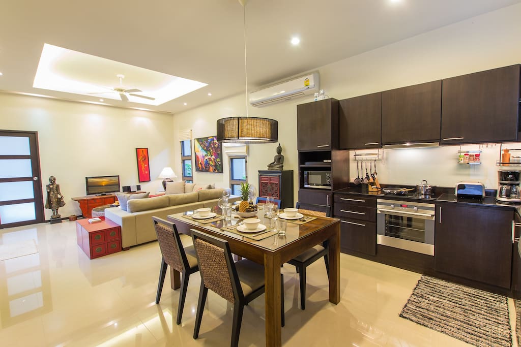 Кухня открытого плана в американском стиле полностью оборудована качественной техникой и посудой, чтобы удовлетворить потребности наших гостей.