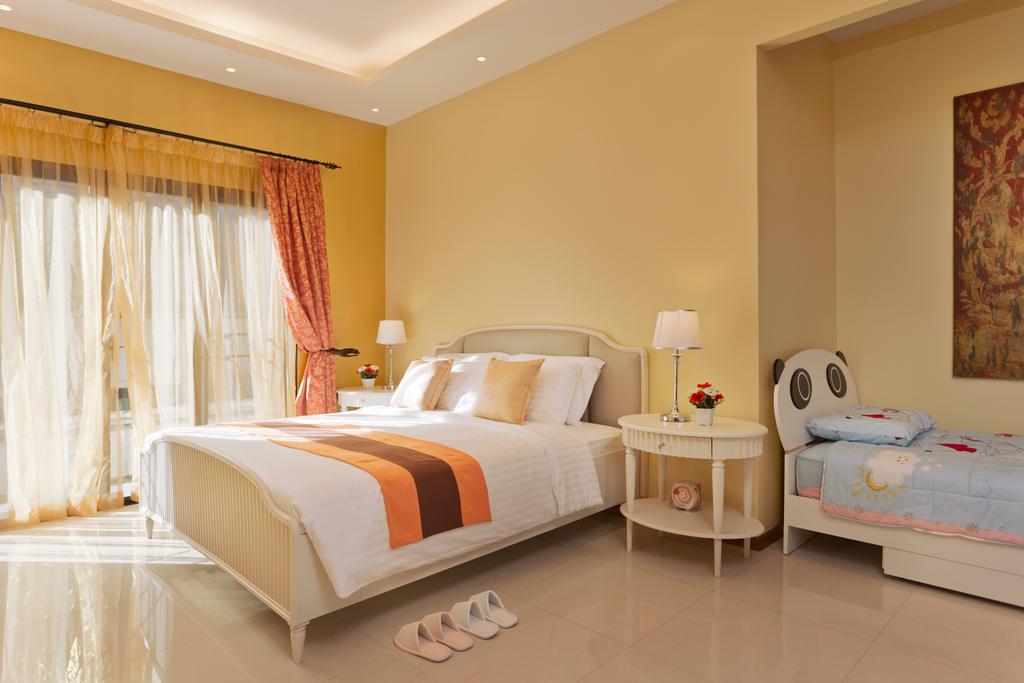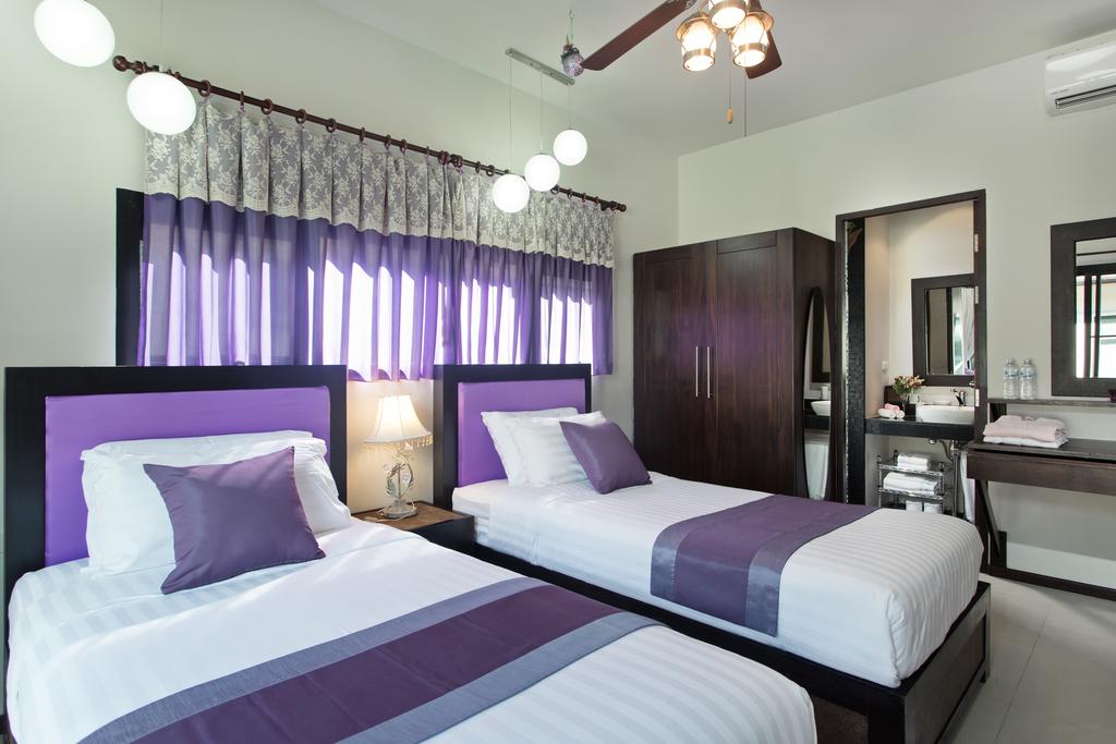 Восьми спальная вилла класса люкс с полным обслуживанием находится в уютном тихом месте, в километре от одного из лучших пляжей Пухкета – Най Харн. Вилла отлично подойдет для семейного отдыха или для размещения большой компании друзей.На территории виллы расположен тропический ухоженный сад 400 кв.м, создающий естесственную прохладу.Центром виллы является прямоугольный бассейн ( 7м х 8м ) с джакузи и площадкой для отдыха и загара вокруг бассейна, оборудованной лежаками и зонтиками. Вилла может быть арендована, как 5, 6, 7 или 8-спаленный дом, каждая спальня со своей ванной комнатой.Вилла состоит из трех зданий, основное здание с 3 спальнями и 3 ванными комнатами, гостиной, столовой и современной, полностью оборудованной кухей.Второе здание с 2 спальнями и 2 ванными комнатами.