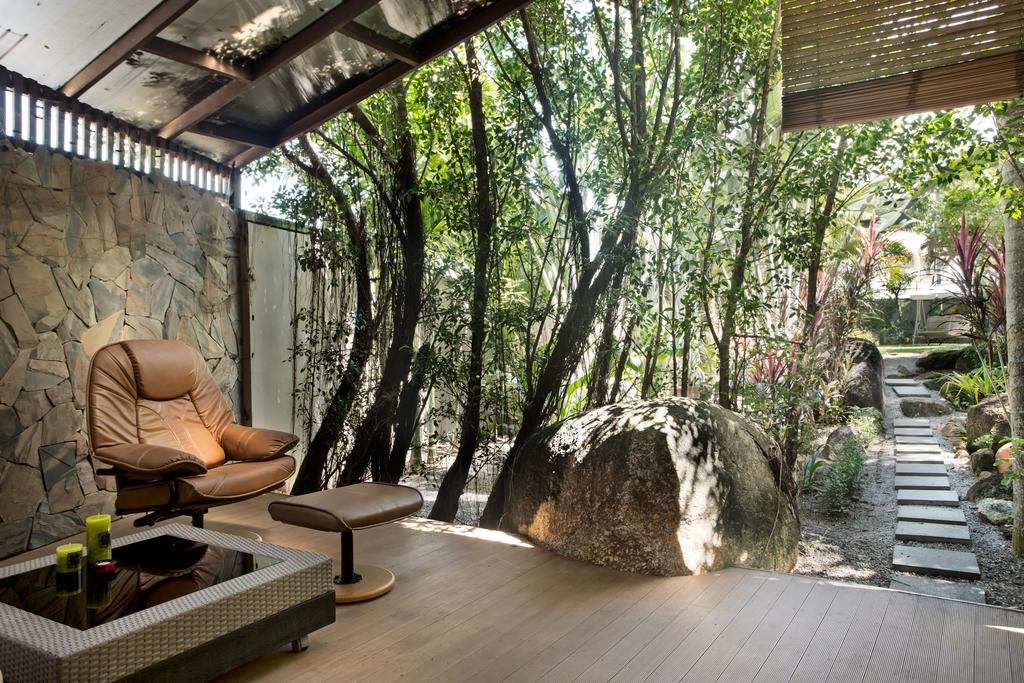 У третьего здания есть выход к бассейну через открытую тропическую террасу.